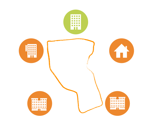 Promotes seamless accessibility through strategically placed secondary access points, linking surrounding neighbourhoods and future developments. A bridge establishes a direct connection between the plots, enabling cohesive site integration.